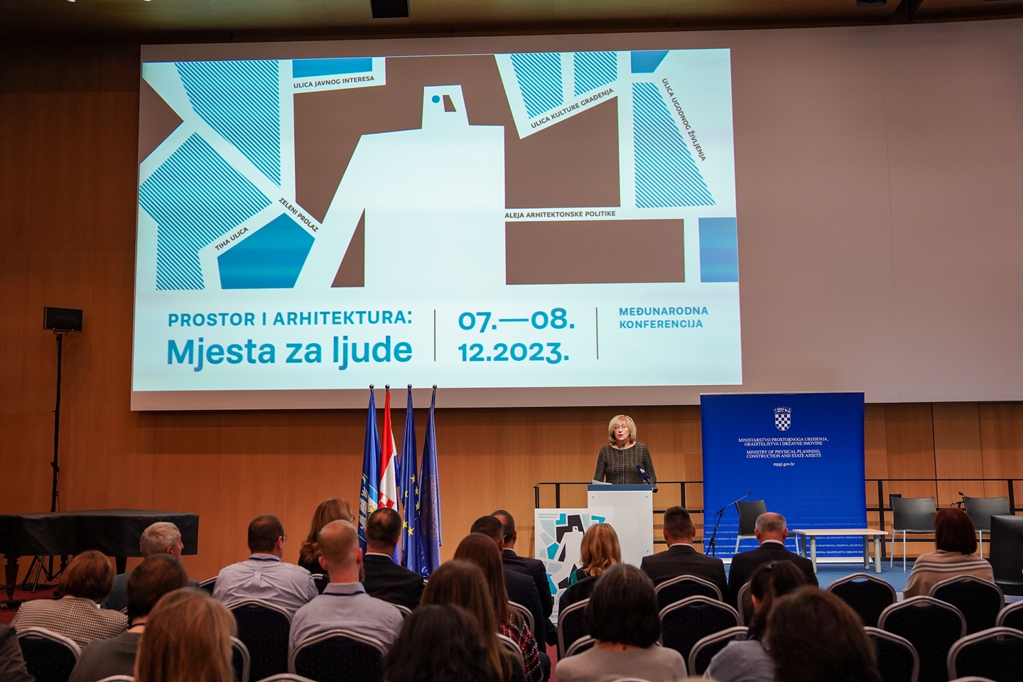 U petak 8. prosinca 2023., u okviru konferencije „Prostor i arhitektura: Mjesta za ljude“, održan je redoviti godišnji sastanak  ravnatelja županijskih zavoda za prostorno uređenje i Ministarstva prostornoga uređenja, graditeljstva i državne imovine – Zavoda za prostorni razvoj. Skup je otvorio ravnatelj Zavoda za prostorni razvoj, Bojan Linardić, podsjetivši nas kratko na aktivnosti Zavoda za prostorni razvoj u 2023. godini s naglaskom na suradnju sa županijskim zavodima te najavio plan rada za 2024. godinu. U nastavku su svi ravnatelji kratko izložili najvažnije poslove u 2023. godini, a posebna tema o kojoj se raspravljalo jesu novi poslovi transformacije prostornih planova od 1.1.2024. godine. Iz Zavoda za prostorno uređenje Zagrebačke županije sastanku je prisustvovala ravnateljica Željka Kučinić. Više o konferenciji na linku Ministarstva: https://mpgi.gov.hr/vijesti-8/odrzana-medjunarodna-konferencija-o-arhitektonskim-politikama-prostor-i-arhitektura-mjesta-za-ljude/17307